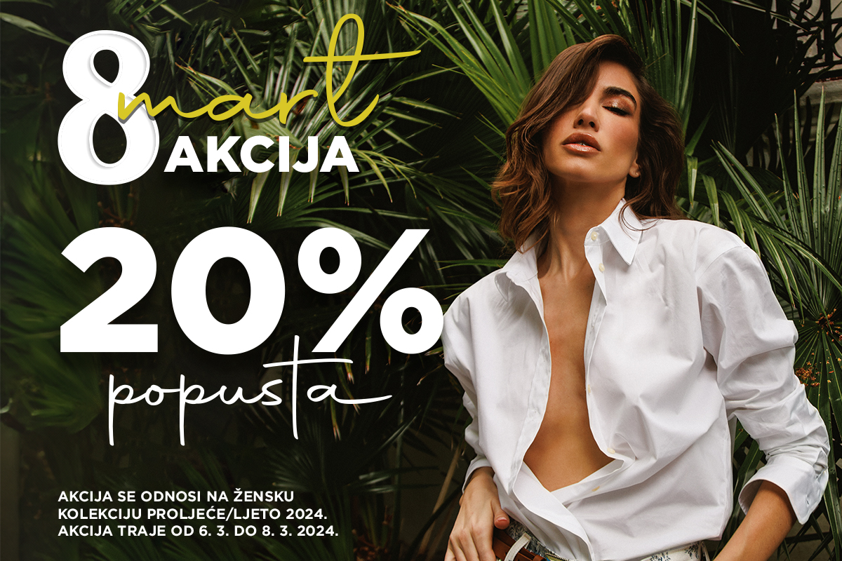 Iskoristite osmomartovski popust od -20% na žensku kolekciju proljeće/ljeto 2024. u prodavnicama Tommy Hilfiger, Hugo, Replay, Guess, Replay, Superdry i Mango u tržnom centru BIG Fashion Podgorica, kao i u svim Fashion&Friends radnjama i webshop-u. Akcija traje od 6. do 8. marta.