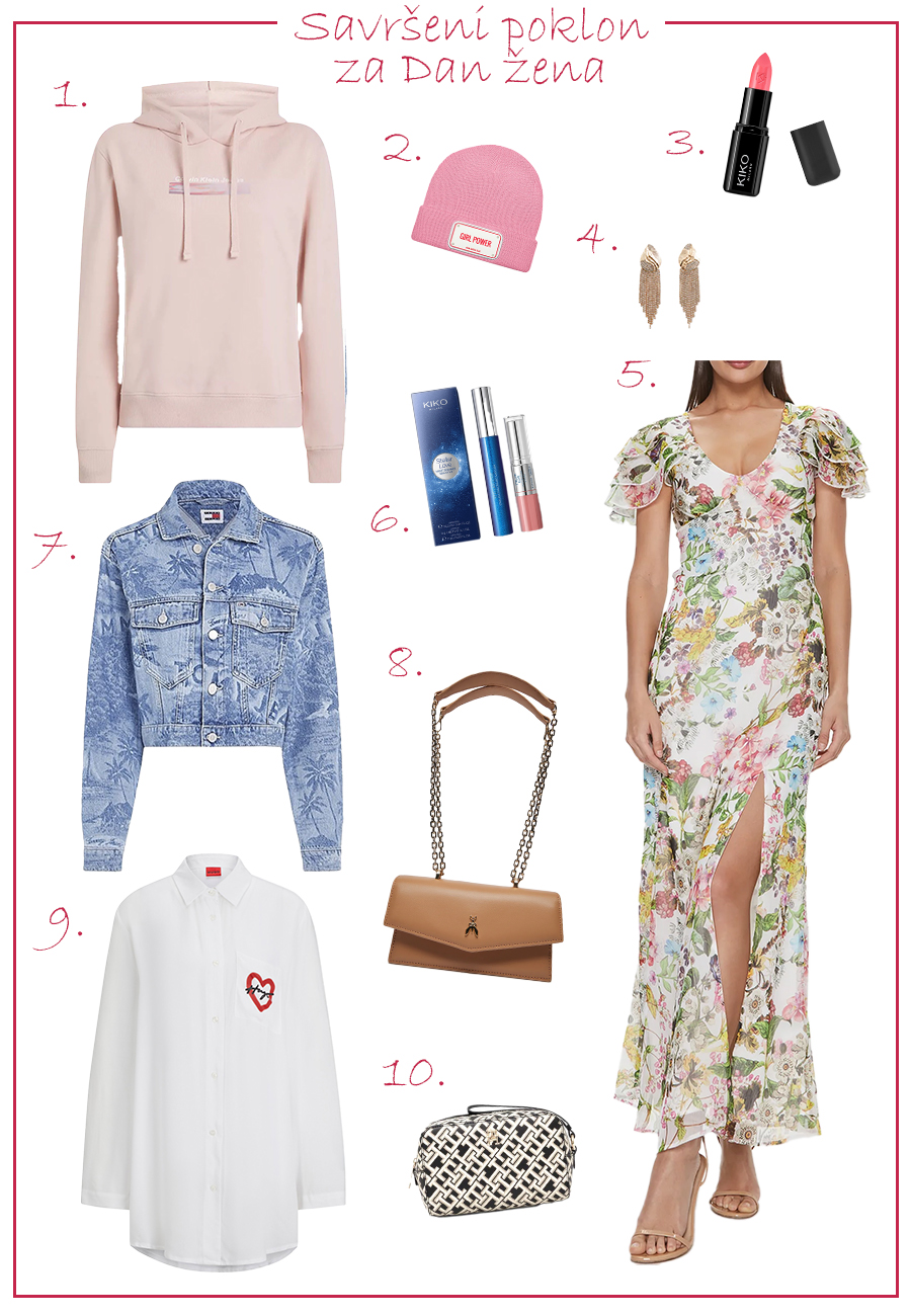 Calvin Klein duks, John Hatter kapa, Kiko Milano karmin, Mango minđuše, Guess haljina, Kiko Milano set, Tommy Hilfiger jakna, Patrizia Pepe torbica, Hugo košulja spavaćica, Tommy Hilfiger neseser