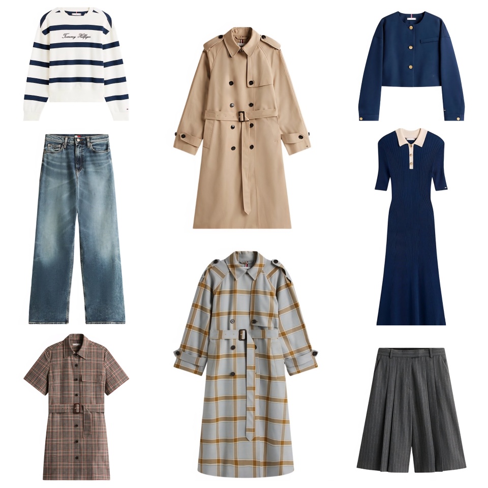 Sama odjeća odgovara ovom klasičnom, ali oživljenom preppy snu. Raznovrsni slojevi su dobrodošli u jesenjoj sezoni: Oksford košulje vire ispod ragbi dukseva, klasične teksas farmerke dobijaju blago šire nogavicee. Tu su i duksevi ukrašeni Tommy logom u klasičnom kurzivnom fontu, a trench mantili, koji se pojavljuju u raznim nijansama i sa karo dezenima, su istaknuti detalj i za muškarce i za žene. Kao i uvijek, karirani i tartan uzorci prepliću kroz Tommy maštu. Kolekcija kombinuje sofisticirani preppy stil sa odvažnim detaljima inspirisanim trkačkom kulturom, spajajući bogatu tradiciju i savremene trendove. Poseban fokus stavljen je na visokokvalitetne materijale – od održivih vunenih tkanina u kaputima, preko funkcionalnih vodootpornih završnih slojeva na farmerkama, do raskošnih tartan i karo dezena. Svaki komad odiše individualnošću i poziva na slobodu izražavanja.